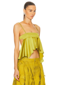 Details - 100% polyester - Made in Italy - Machine wash - Back hook and eye closure - Adjustable shoulder straps - Back cut-out with ruched asymmetric front hem - Satin fabric - Our Style No. ATTF-WS113 - Manufacturer Style No. 242WCT232 - E093 - 080