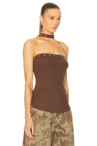 Details - Self: 100% cotton - Padding: 100% polyester - Made in Portugal - Machine wash - Lace-up back tie closure - Halterneck styling with silver-tone eyelets - Back cut-out - Ribbed jersey fabric - Our Style No. ATTF-WS116 - Manufacturer Style No. 242WCT238 - J038 - 590