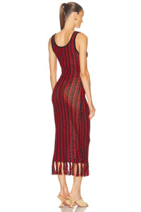 STRIPE SCOOPNECK FRINGE DRESS