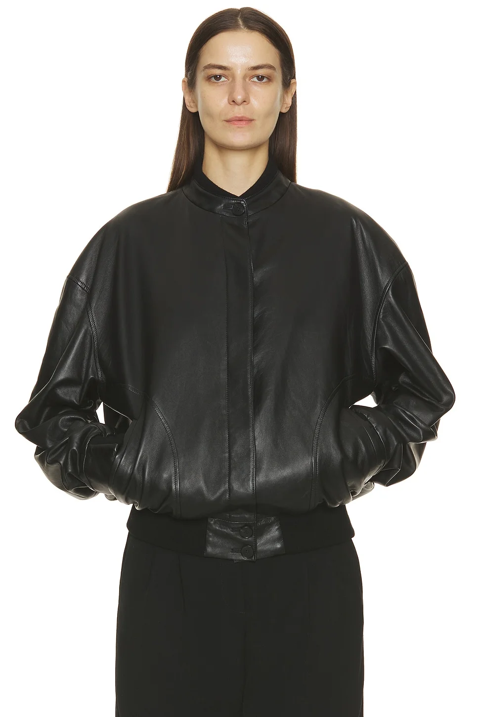 Details - Self: 100% lambskin leather - Lining: 100% silk - Contrast Fabric: 95% virgin sheep wool, 5% goat cashmere - Professional leather clean only - Hidden front button closure - Side seam pockets - Button cuffs - Elasticized ribbed hem - Heavyweight leather fabric - Made in Italy - Our Style No. TERX-WO153 - Manufacturer Style No. 10466-L329