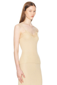 Ikee lace-trimmed ribbed silk-blend tank Sand