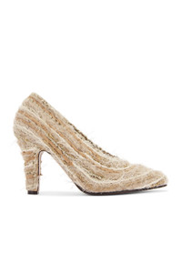 Details - Patchwork lama wool, plush knit, canvas, and yarn upper with calf leather sole - Made in Italy - Slip-on styling - Lamb leather lining - Distressed fil de coupe style upper - Pointed toe - Approx 90mm/ 3.5 inch heel - Our Style No. TERX-WZ389 - Manufacturer Style No. F1532-MY1