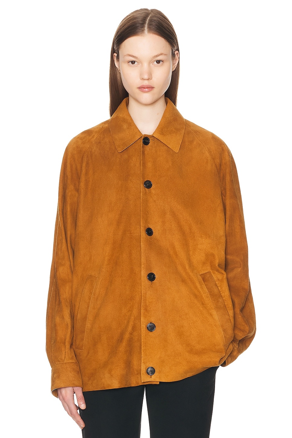 Details - Self: 100% sheep skin - Lining: 100% goat cashmere - Made in Italy - Dry clean recommended - Front button closure - Side slant pockets - Buttoned cuffs - Smooth suede fabric - Our Style No. TERX-WO104 - Manufacturer Style No. 8326-L269