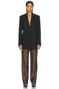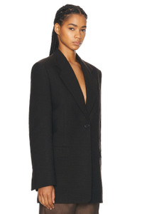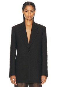 Details - Self: 58% cotton, 37% sheep wool, 4% polyamide - Lining: 100% silk - Made in Italy - Dry clean only - Singular front button closure - Padded shoulder and split cuff - Front flap pockets and interior slip pocket - Back vent - Structured suiting fabric - Our Style No. TERX-WO94 - Manufacturer Style No. 8503-W3472