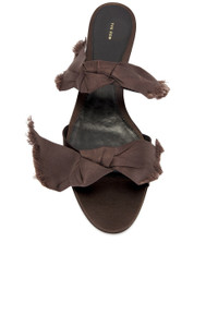 Details - Satin upper with calf leather sole - Made in Italy - Slip-on styling - Lamb leather lining - Dual straps with fringed knot detail - Open almond toe - Our Style No. TERX-WZ387 - Manufacturer Style No. F1571-W326
