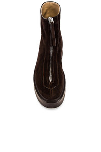 Details - Suede upper with thick rubber crepe sole - Made in Italy - Front zip closure - Leather insole - Tonal stitching - Round toe - Approx 50mm/ 2 inch heel - Approx 40mm/ 1.5 inch platform - Approx 150mm/ 6 inch shaft - Our Style No. TERX-WZ51 - Manufacturer Style No. F1144-L25