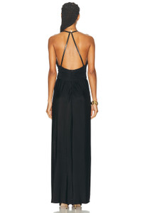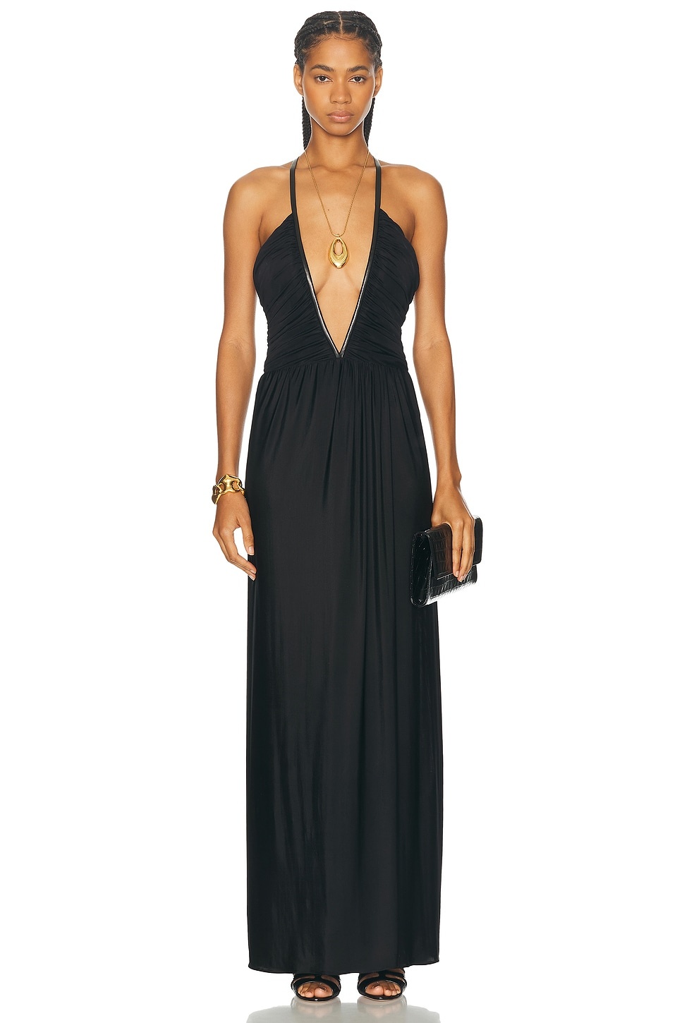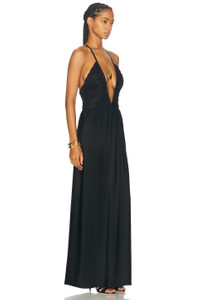 STRETCH JERSEY DEEP V-NECK EVENING DRESS