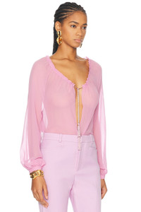 Long-Sleeve Drawstring Silk Georgette Blouse