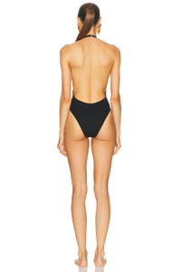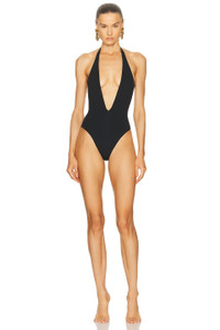 Details - Self: 62% polyamide, 38% elastane - Lining: 82% polyamide, 18% elastane - Hand wash - Halterneck gold-tone clasp closure - Plunging V-neckline - Open back - Made in Italy - Our Style No. TFOF-WX14 - Manufacturer Style No. SWJ050-JEX176