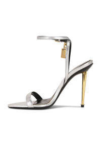 SHINY LEATHER PADLOCK POINTY NAKED SANDAL