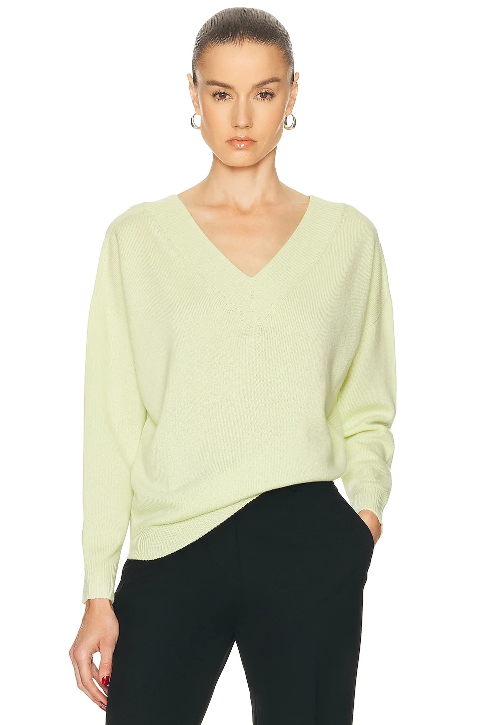 Details - Self 1: 100% cashmere - Self 2: 98% cashmere, 1% elastane, 1% polyamide - Made in Italy - Dry clean - Pull-on styling - Ribbed trims - Lightweight fine knit textile - V-neck styling - Our Style No. TFOF-WK18 - Manufacturer Style No. MAK1437-YAX1030