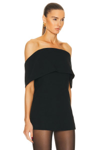 Details - Self: 70% viscose, 30% virgin wool - Lining: 100% polyester - Made in Portugal - Dry clean only - Hidden back zipper closure - Off-shoulder styling with draped neckline - Midweight suiting fabric - Our Style No. TOTF-WS108 - Manufacturer Style No. 241-WRT997-FB0068