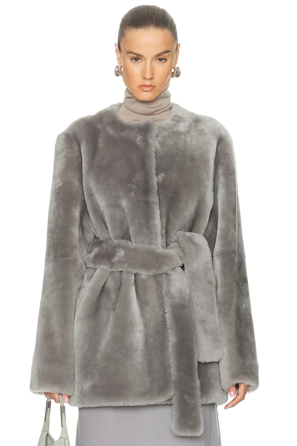 Details - Fabric: 100% genuine lamp shearling - Made in Turkey - Professional leather clean only - Front hook and eye closures - Waist tie included - Hidden slant pockets - Fur textile - Our Style No. TOTF-WO98 - Manufacturer Style No. 254-WRO0236-LE0165