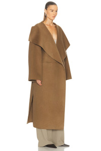 Draped wool and cashmere-blend felt coat Camel