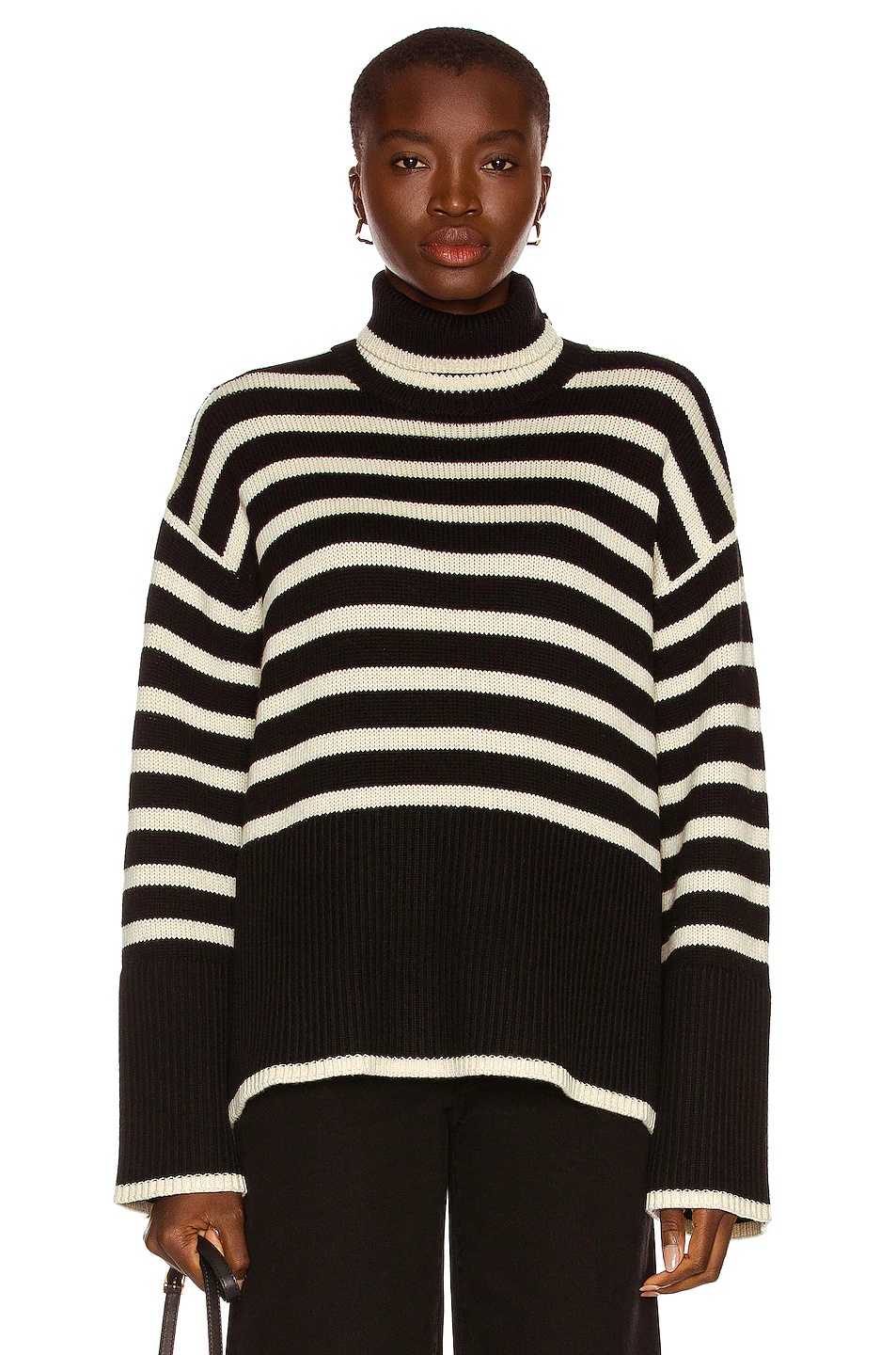 Details - 56% wool, 44% cotton - Made in China - Hand wash - Foldover turtleneck - Ribbed trims - Bell sleeves - Split hem detail at sides - Midweight intarsia knit fabric - Our Style No. TOTF-WK56 - Manufacturer Style No. 212-562-758