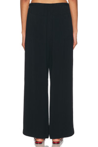 Woven stripe drawstring trousers black