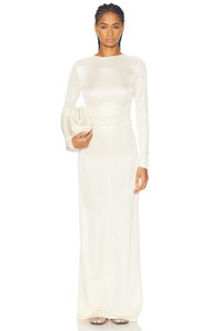Luella gathered stretch-knit maxi dress Cream