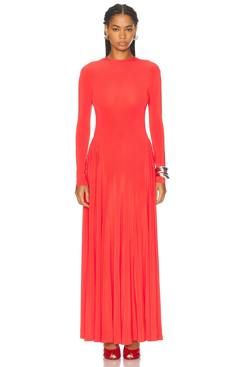 Orea gathered stretch-jersey maxi dress Red