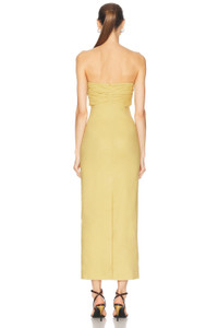 Details - Self: 58% linen, 37% cotton, 5% elastane - Lining: 57% viscose, 43% polyester - Made in Portugal - Machine wash - Fully lined - Hidden back zip closure - Boned sides - Front bow accent - Midweight crepe fabric - Our Style No. TOVF-WD45 - Manufacturer Style No. TVD124LSN