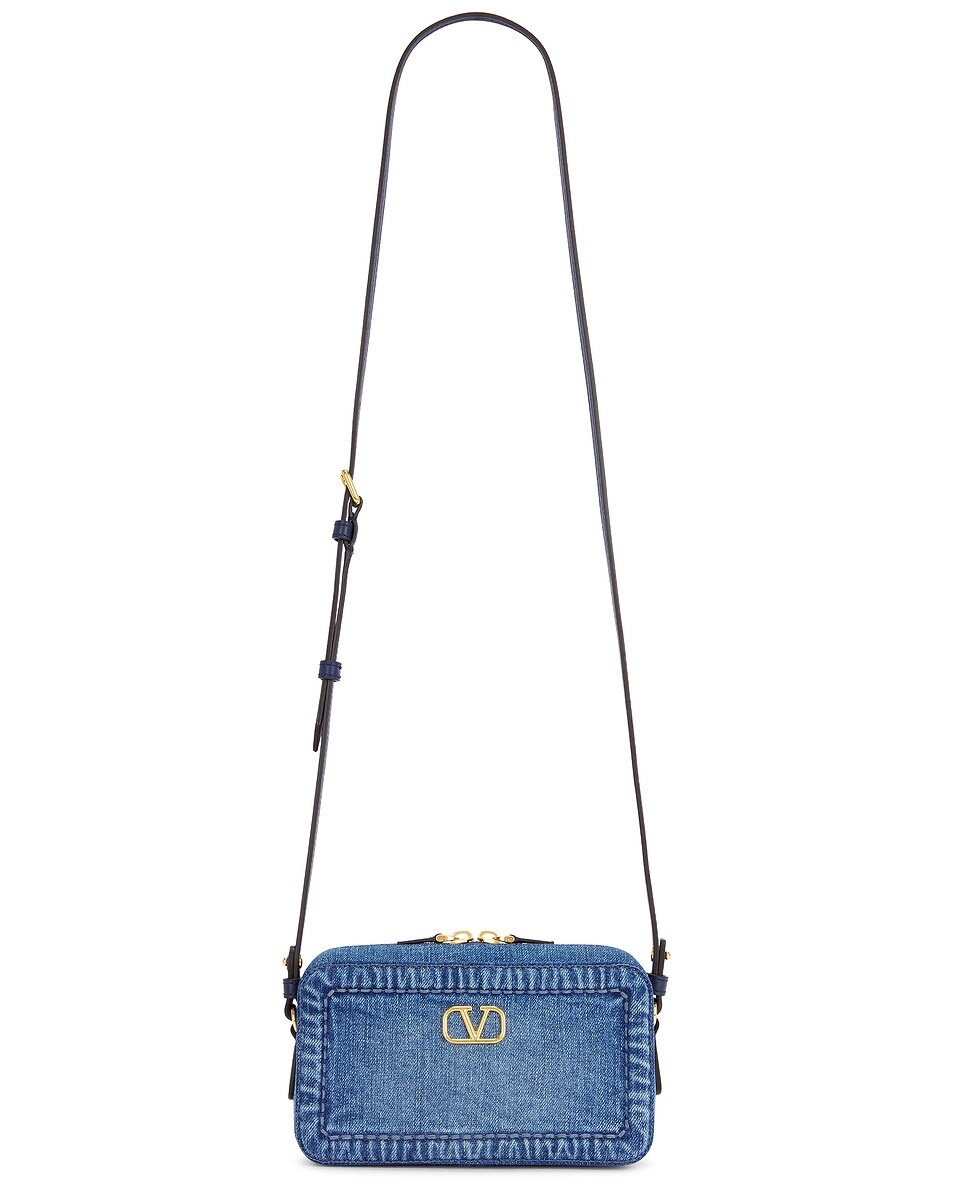 Details - Denim exterior with canvas lining - Made in Italy - Dual top zipper closure - One main compartment - Interior card slot - Detachable and adjustable leather shoulder strap - Measures approx 19 cm W x 10 cm H x 5 cm D - Shoulder strap with a 53 cm drop - Our Style No. VENT-WY1222 - Manufacturer Style No. 6W2P0AI5JXE