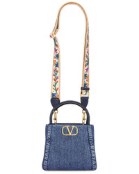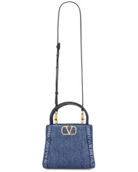 Details - Denim exterior with leather trim and canvas lining - Made in Italy - Top magnetic button closure - One main compartment - Interior zipper pocket - Gold-tone VLogo hardware at front - Integrated leather handles - Dual detachable and adjustable shoulder straps - Measures approx 19 cm W x 17 cm H x 13 cm D - Shoulder strap with a 47 cm - 51 cm drop - Top handle with a 8 cm drop - Our Style No. VENT-WY1244 - Manufacturer Style No. 6W2B0R22XEY