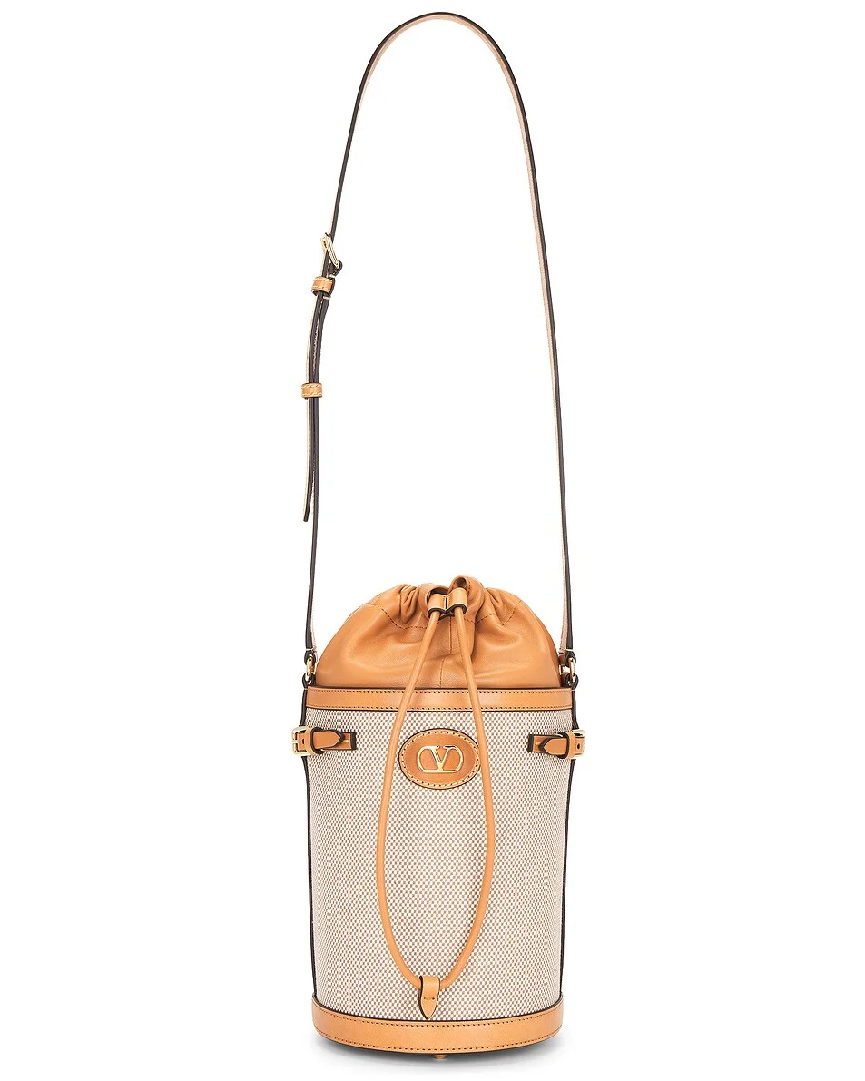 Details - Calf leather and textile exterior with textile lining and gold-tone hardware - Made in Italy - Drawstring fastening - One main compartment - Logo plaque - Adjustable shoulder strap - Protective feet - Measures approx 17 cm W x 28 cm H x 17 cm D - Shoulder strap with a 33 cm drop - Our Style No. VENT-WY1326 - Manufacturer Style No. 8W2B0S97EZT