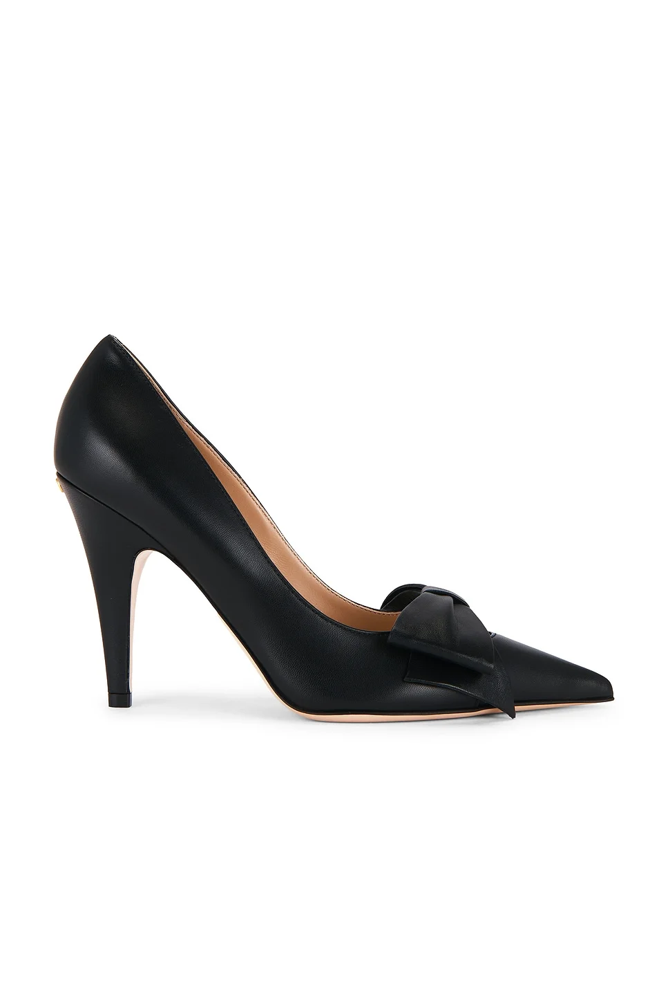 Details - Kidskin leather upper with leather sole - Slip-on styling - Cushioned leather footbed and lining - Bow accent at vamp - Pointed toe - Stiletto heel - Gold-tone Vlogo signature detail at back counter - Approx 100m/ 4 inch heel - Made in Italy - Our Style No. VENT-WZ1019 - Manufacturer Style No. 7W0S0NE6DDT
