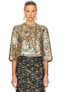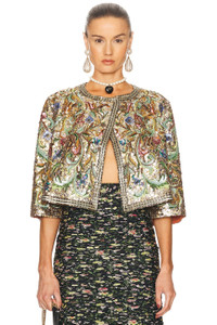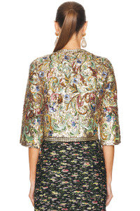 Details - Self 1: 100% silk - Self 2: 100% polyester - Lining: 74% acetate, 26% silk - Dry clean only - Front button closure at collar - Sequin embellished fabric - Made in Italy - Our Style No. VTIF-WO35 - Manufacturer Style No. 6B0CE44A1C8