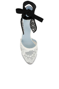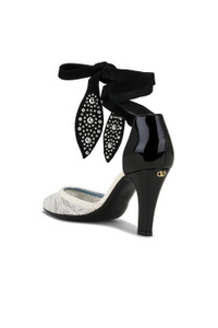 Details - Grained calfskin and lace upper with leather sole - Suede ankle tie closure - Silver-tone stud design at closure - Leather footbed and lining - Almond toe - Patent leather heel - Approx 85mm/ 3.3 inch heel - Made in Italy - Our Style No. VENT-WZ955 - Manufacturer Style No. 6W0S0LT5HTZ