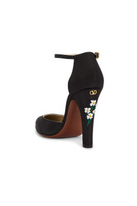 Details - Satin upper with leather sole - Gold-tone ankle buckle closure - Cushioned leather footbed and lining - Embroidered floral detailing at vamp and heel - Signature brass VLogo on heel - Pointed toe - Approx 105mm/ 4 inch heel - Made in Italy - Our Style No. VENT-WZ975 - Manufacturer Style No. 7W2S0MI2ZBN