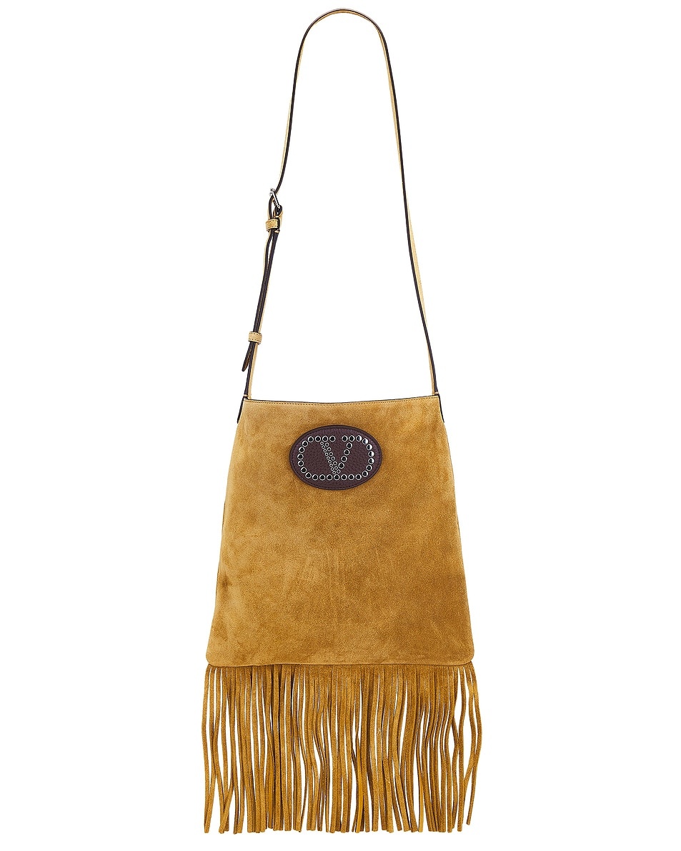 Details - Suede exterior and lining - Made in Italy - Open top styling - One main compartment - Palladium studded leather patch at face - Dangling fringe - Measures approx 30 cmW x 31 cmH x 3 cmD - Adjustable shoulder strap with a 45 cm drop - Our Style No. VENT-WY1187 - Manufacturer Style No. 6W2B0R29TYW