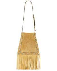 Details - Suede exterior and lining - Open top styling - One main compartment - Palladium-finish studded detail - Fringe detail - Measures approx 30 cm W x 31 cm H x 3 cm D - Adjustable shoulder strap with a 45 cm drop - Made in Italy - Our Style No. VENT-WY1305 - Manufacturer Style No. 8W2B0R33JET