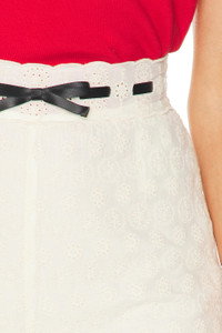 Details - Self & Lining: 100% cotton - Dry clean only - Hidden side zip closure - Front bow accent - Scalloped hem - Lightweight eyelet fabric - Made in Italy - Our Style No. VTIF-WF37 - Manufacturer Style No. 7B3RF3409EU