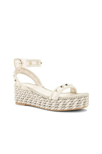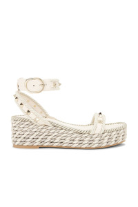 Details - Leather upper with rubber sole - Made in Italy - Ankle buckle closure - Leather footbed and lining - Round toe with jute midsole with metallic threading - Signature pyramid rockstuds - Approx 50mm/ 2 inch wedge - Approx 25mm/ 1 inch platform - Our Style No. VENT-WZ918 - Manufacturer Style No. 6W2S0GI3EMP