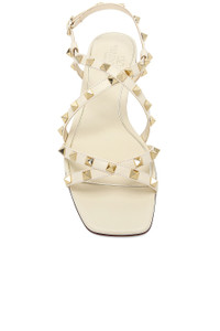Details - Gold-tone studded calfskin upper and sole - Made in Italy - Ankle buckle closure - Criss-cross vamps - Square open toe - Our Style No. VENT-WZ795 - Manufacturer Style No. 4W2S0HR8VOD
