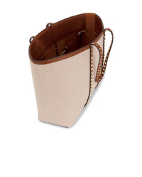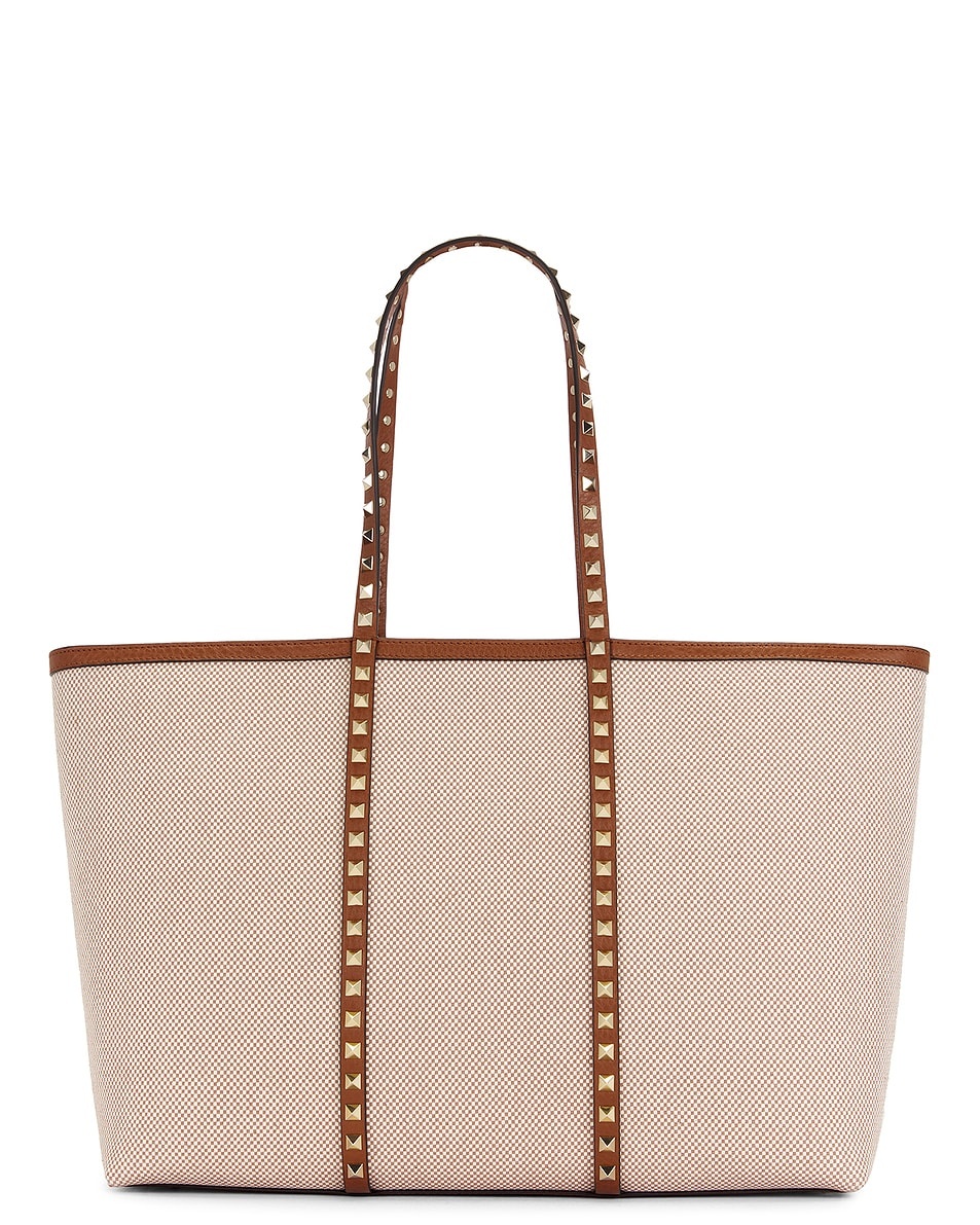 Details - Canvas exterior with suede lining - Made in Italy - Interior magnetic closure - One main compartment - Interior zipper pocket - Gold-tone rockstud-embellished shoulder straps - Gold-tone metal feet - Detachable pouch - Measures approx 37 cm W x 27 cm H x 12 cm D - Shoulder straps with a 23 cm drop - Our Style No. VENT-WY1212 - Manufacturer Style No. 6W2B0R04QCE