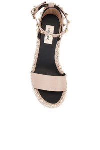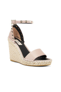 DOUBLE ROCKSTUD GRAINY CALFSKIN WEDGE SANDAL 105 MM