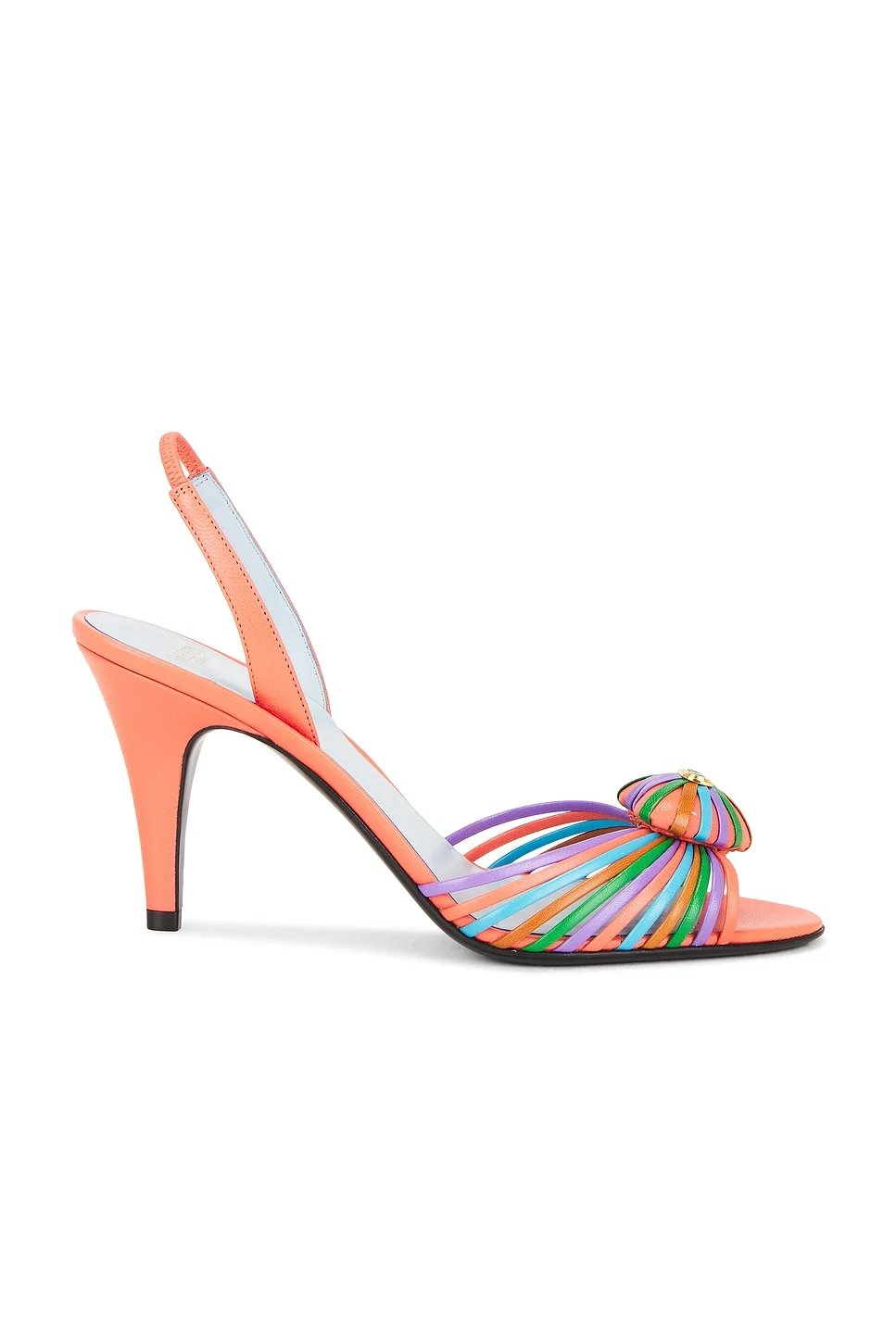 Details - Rainbow-hued leather upper and sole - Made in Italy - Slingback styling - Cushioned leather footbed and lining - Front gold-tone VLogo hardware at front - Heart shape detail - Almond toe - Approx 90mm/ 3.5 inch heel - Our Style No. VENT-WZ1048 - Manufacturer Style No. 8W2S0LU8PJS
