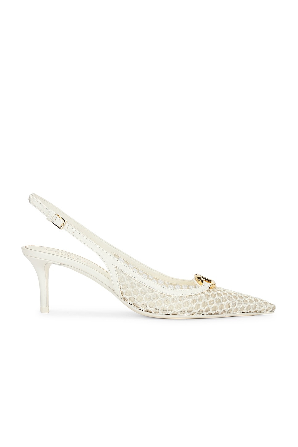 Details - Mesh upper with leather trim and leather sole - Made in Italy - Sling-back styling with adjustable buckled strap - Leather footbed - Gold-tone VLogo hardware at vamp - Pointed toe - Approx 65mm/ 2.5 inch heel - Our Style No. VENT-WZ852 - Manufacturer Style No. 4W0S0JB7FXG
