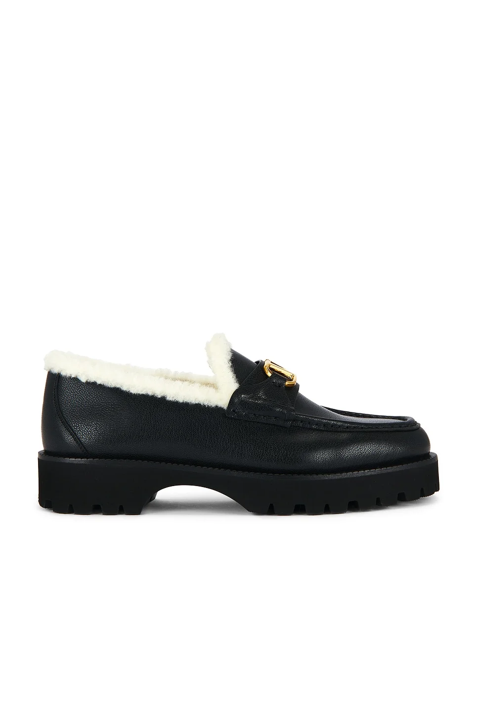 Details - Calfskin leather upper with rubber sole - Pull-on styling - Faux fur footbed and lining - Penny loafer strap with gold-tone Vlogo signature detail - Rounded toe - Block heel - Approx 40mm/ 1.5 inch heel - Made in Italy - Our Style No. VENT-WZ1020 - Manufacturer Style No. 7W0S0NF5JJJ