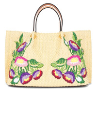 Details - Synthetic raffia with floral embroidery exterior with canvas lining and leather base - Made in Italy - Open top - One main compartment - Antique brass finish hardware and leather trim - Detachable leather shoulder strap and pouch with zipper closure - Measures approx 36 cm W x 24 cm H x 17 cm D - Shoulder strap with a 33 cm drop - Top handle with a 14 cm drop - Pouch measures approx 20 cm W x 14 cm H - This item is not available to ship to Australia - Our Style No. VENT-WY1248 - Manufacturer Style No. 6W2B0R44EVB