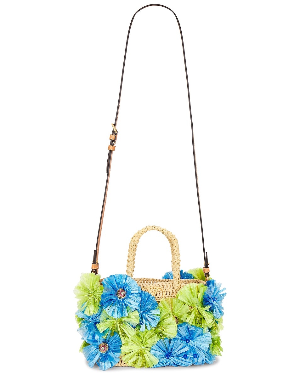 Details - Unlined synthetic raffia with 3floral accents embellished with jeweled buttons and leather base - Made in Italy - Open top - One main compartment - Detachable shoulder strap - Measures approx 22 cm W x 15 cm H x 8 cm D - Shoulder strap with a 43 cm drop - Top handle with a 10 cm drop - This item is not available to ship to Australia - Our Style No. VENT-WY1247 - Manufacturer Style No. 6W2B0R23GCZ