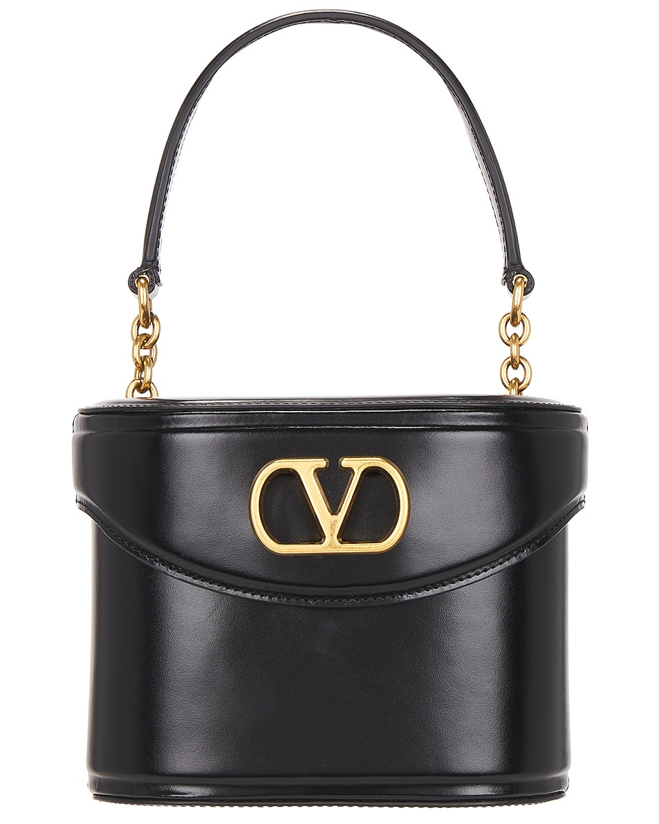Details - Shiny calfskin leather exterior with nappa lining - Magnetic flap closure featuring VLogo signature hardware - One main compartment - Single interior slip pocket - Compact vanity-case silhouette - Versatile carrying: hand-held top handle or detachable chain/leather crossbody strap - Measures approx 16 cm W x 13 cm H x 8 cm D - Shoulder strap with a 55 cm drop - Top handle with a 12 cm drop - Made in Italy - Our Style No. VENT-WY1282 - Manufacturer Style No. 7W2B0R95GCB
