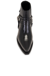 Details - Leather upper with leather sole - Made in Spain - Pull-on styling - Leather footbed and lining - Leather boot harness with silver-tone hardware - Pointed toe with wooden block heel - Approx 65mm/ 2.5 inch heel - Approx 108mm/ 4.25 inch shaft - Our Style No. VSAC-WZ148 - Manufacturer Style No. 1017195-1A12153