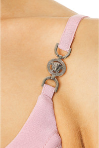 Details - Self: 74% acetate, 26% viscose - Lining: 75% acetate, 25% silk - Made in Italy - Dry clean only - Fully lined - Hidden back zipper closure - Boned bodice - Silver-tone Medusa shoulder strap detail - Crepe fabric - Our Style No. VSAC-WD145 - Manufacturer Style No. 1013213_1A00540