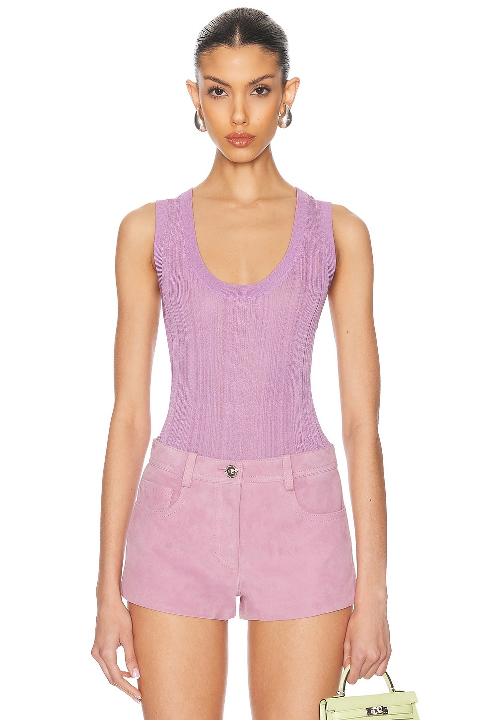 Details - 76% viscose, 24% polyamide - Made in Italy - Hand wash - Front scoop neckline - Lightweight ribbed knit fabric - Our Style No. VSAC-WS285 - Manufacturer Style No. 1019770_1A13905