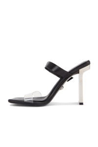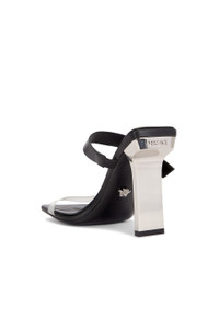 Details - Leather upper and sole silver-tone metal detail - Made in Italy - Adjustable ankle buckle closure - Leather footbed and lining - Clear vinyl vamp - Square toe - Silver-tone metal heel - Approx 105mm/ 4.2 inch heel - Our Style No. VSAC-WZ149 - Manufacturer Style No. 1017187-1A08651
