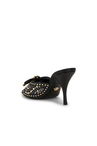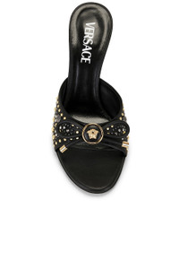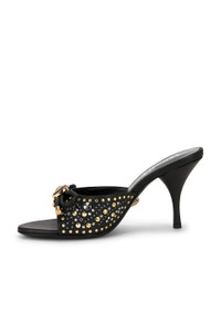 Details - Leather upper and leather sole - Leather footbed and lining - Slip-on styling - Peep toe with stiletto heel - Round toe - Crystal and gold-tone embellishments - Made in Italy - Our Style No. VSAC-WZ157 - Manufacturer Style No. 1018239_1A16222