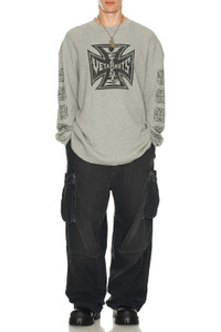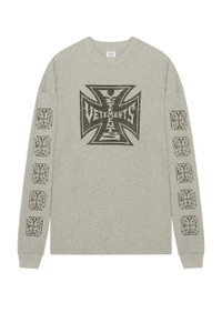 Gray Biker Cross Waffle Longsleeve T-shirt