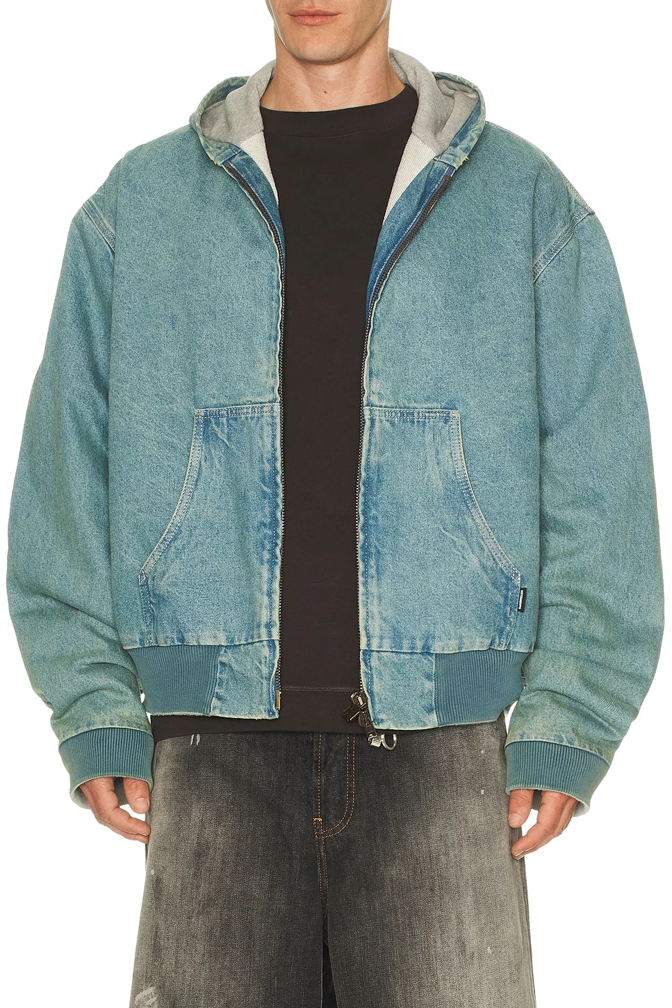 Hooded Workwear Denim Jacket Vintage Mid Blue